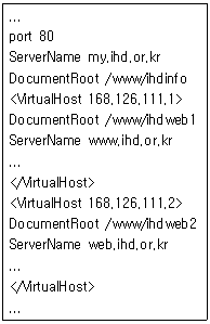 61. 다음은 간략한 가상 호스팅에 대한 아파치웹 서버 설정파일의 내용이다. 설정에 대한 설명으로 가장 적절한 것은?