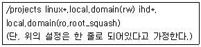 74. 다음은 NFS설정파일인 /etc/exports 파일의 내용이다. 이에 대한 설명으로 적절하지 않은 것은?