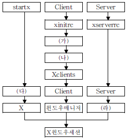 10. 다음은 X윈도우가 구동되는 과정을 도식화한 것이다. 각 항목이 올바로 짝지어진 것은?