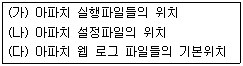 68. configure 명령에 --prefix=/usr/local/apache 옵션만 주고 아파치를 컴파일 설치하였다. 이 때 아래 항목에 대한 디렉토리 위치가 순서대로 바르게 짝지어진 것은?