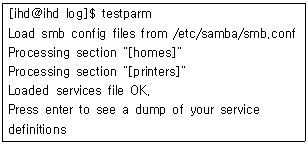 75. 다음은 testparm 명령의 실행 결과이다. 이에 대한 설명으로 가장 적절한 것은?