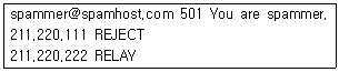 86. 다음은 스팸 메일을 방지하기 위한 /etc/mail/access 파일의 설정이다. 이에 대한 설명으로 틀린 것은?