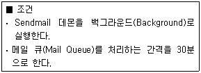 87. 메일서버관리자 홍길동은 아래와 같은 조건으로 Sendmail을 실행하려고 한다. 이를 위한 올바른 명령은?