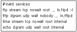 93. 다음은 수퍼데몬의 일종인 inetd 설정의 일부이다. 이에 대한 설명으로 가장 올바른 것은?