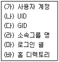 24. 다음 중 패스워드 파일(/etc/passwd)에서 확인 할 수 있는 항목으로 묶여진 것은?