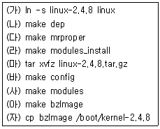 42. 다음은 커널 컴파일 과정을 순서 없이 나열한 것이다. 순서대로 바르게 나열된 것은?