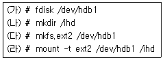 50. 다음은 새로운 디스크를 장착하기 위해 사용하는 명령들을 순서 없이 나열한 것이다. 순서대로 알맞게 나열한 것은?