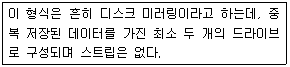 6. 다음의 설명에 해당하는 RAID 형태는?