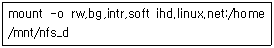 73. 다음은 NFS 클라이언트에서 NFS 서버를 마운트하기 위해 사용한 명령이다. 이와 동일한 내용을 /etc/fstab 파일에 구현한 것으로 알맞은 것은?