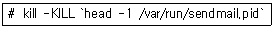 83. /var/run/sendmail.pid 파일에 Sendmail 서버 프로세스의 PID 값이 저장되어 있다고 가정했을 때, 다음 명령에 대해 가장 적절하게 설명한 것은?