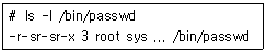 27. 다음 명령의 실행결과를 보고 /bin/passwd 파일에 대한 설명으로 틀린 것을 고르시오.