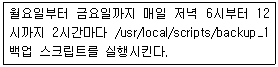 35. cron 프로그램을 사용하여 다음과 같은 작업을 수행하려고 한다. 이를 위한 crontab의 내용으로 알맞은 것은?
