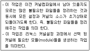 43. 커널 컴파일 과정 중 아래에서 설명하는 명령이 순서대로 바르게 나열된 것은?