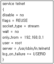 91. 아래의 Xinetd 서비스 설정에 대한 설명으로 틀린 것은?