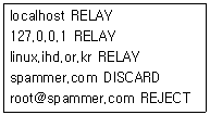 88. 다음은 sendmail의 메일 릴레이(Relay)를 제어하는 파일인 /etc/mail/access의 예이다. 설명 중 올바르지 못한 것은?