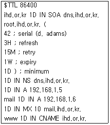 90. 위의 DNS 서버의 forward 영역 파일에 대한 설명으로 적절하지 않는 것은?