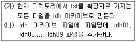 50. 다음 (가), (나)와 같은 조건으로 tar 명령어를 실행하려고 할 때 보기 중 명령어를 올바르게 짝지은 것은?(순서대로 (가), (나))