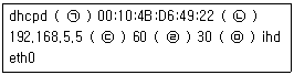 93. DHCP 클라이언트는 DHCP 서버에 요청을 하여 IP, 게이트웨이 정보, DNS 정보 등을 받아오는 역할을 한다. MAC 주소가 00:10:4B:D6:49:22이고, 요청하는 IP를 192.168.5.5로 요청한다고 하고, leasetime은 60초 그리고 호스트 이름을 ihd, 타임 아웃은 30초라고 설정했을 때 다음 ( )안에 알맞은 옵션을 순서대로 나열한 것은?(순서대로 (ㄱ) (ㄴ) (ㄷ) (ㄹ) (ㅁ))