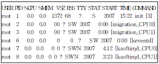 40. 다음 보기 중 리눅스에서 출력되는 정보의 내용이 다른 하나는 무엇인가?