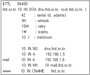 82. 아래 DNS 서버의 forward 영역 파일에 대한 설명으로 틀린 것은?