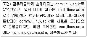 84. 리눅스 대학교(linux.ac.kr) 서버관리자인 홍길동은 학과체계에서 학부제로 바뀌면서 DNS 서버 설정 요청을 받았다. 다음과 같이 설정하기 위해 사용해야 할 레코드로 알맞은 것은?