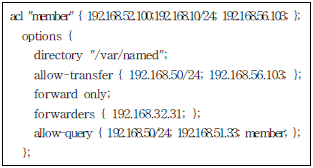 86. 다음은 DNS서버의 설정 파일인 /etc/named.conf 파일의 일부이다. 다음의 설정과 관련된 내용중 틀린 것은?