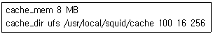88. 다음은 프록시 서버인 squid의 환경설정파일인 squid.conf의 일부분이다. 디스크에 생성되는 프록시 서버의 크기는 몇 MB인가?