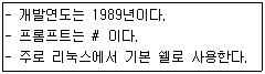 33. 다음에서 설명하는 쉘(SHELL)의 종류로 알맞은 것은?