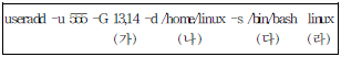 34. 다음 사용자를 추가하는 명령어에 대한 각각의 설명으로 알맞은 것은?