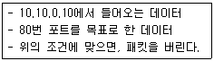 99. 커널 수준에서 패킷필터기능을 가지고 있는 iptables 에서 아래 조건을 만족하기 위한 설정으로 알맞은 것은?