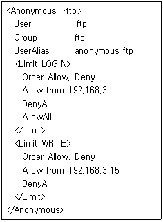 76. 다음은 ProFTPD 서버의 설정 파일인 proftpd.conf 파일의 일부이다. 다음 설정과 관련된 내용 중 틀린 것은?