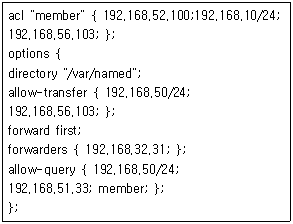 91. 다음은 DNS서버의 설정 파일인 /etc/named.conf 파일의 일부이다. 다음의 설정과 관련된 내용 중 알맞은 것은?