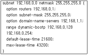 94. 다음은 DHCP 서버의 설정 파일인 dhcpd.conf 파일의 일부이다. DHCP를 이용하는 클라이언트에게 할당되는 게이트웨이 주소로 알맞은 것은?