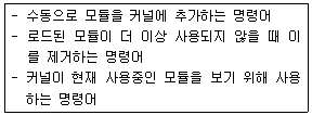 42. 다음에서 설명된 리눅스 커널 모듈 관련 명령어가 순서대로 알맞은 것은?