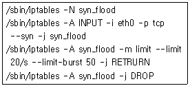 60. 다음 iptables 명령에 대한 설명으로 틀린 것은?