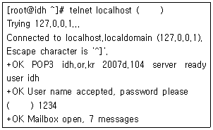 81. 메일 호스팅을 하는데 한 계정이 아웃룩으로 편지가 받아지지 않아 패스워드 점검을 로컬에서 진행하였다. 패스워드가 1234라고 가정할 때 다음 ( )안에 들어갈 내용을 순서대로 나열한 것 중 알맞은 것은?