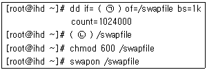 30. 다음은 스왑파일을 생성하는 절차를 나타낸 것이다. ( 괄호 )안에 들어갈 내용으로 알맞은 것은?