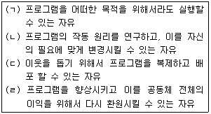 4. 자유 소프트웨어(Free Software)를 충족시키는 조건을 모두 고른 것으로 알맞은 것은?