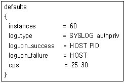 86. 다음 xinetd.conf 파일의 내용 중 옵션에 대한 설명이 틀린 것은?