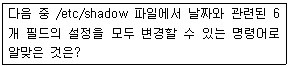 24. 리눅스에서는 사용자의 패스워드의 만료기간, 계정 만료일 등은 /etc/shadow에서 관리한다.