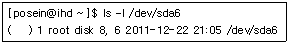 26. 다음과 같이 하드 디스크 장치 파일명에 아래의 명령을 실행했을 경우, (괄호)에 들어갈 내용으로 알맞은 것은?