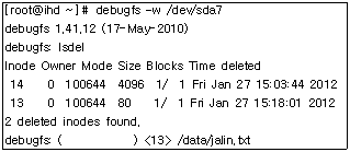 28. 다음은 지워진 파일을 미리 적어둔 파일명과 아이노드 번호를 이용하여 복구하는 과정이다. (괄호)에 들어갈 명령으로 알맞은 것은?