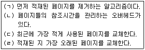 3. FIFO (First-In First-Out) 기법을 이용하여 페이지 교체 기법을 사용하는 시스템에서 새로운 페이지를 적재하고자 한다. 이 기법이 속하는 것으로 알맞은 것은?