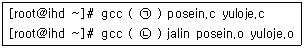 39. C언어를 이용하여 어떤 프로그램을 posein.c, yuloje.c 두 개의 소스로 구성하였다. 다음과 같이 오브젝트 파일을 생성한 뒤에 jalin이라는 실행 파일을 만들고자 할 때 (괄호)에 들어갈 옵션으로 알맞은 것은?