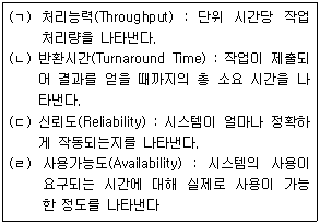 4. 시스템 성능을 나타내는 요소 중 알맞은 것은?