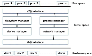 5. 아래 그림은 리눅스 커널의 구조를 나타낸 것이다. (가)와 (나)에 들어갈 내용으로 알맞은 것은?