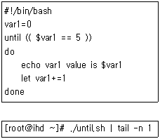 11. 셸 스크립트인 until.sh의 내용이 다음과 같을 때 명령 실행 결과로 알맞은 것은?