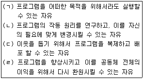 3. 자유 소프트웨어(Free Software)를 충족시키는 조건을 모두 고른 것으로 알맞은 것은?