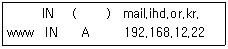 82. 다음은 설정된 DNS 서버 zone 파일의 일부이다. 다음 ( 괄호 )안에 들어갈 내용으로 알맞은 것은?