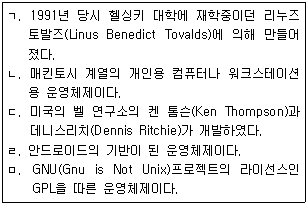 4. 리눅스의 특징으로만 짝지어진 것으로 알맞은 것은?
